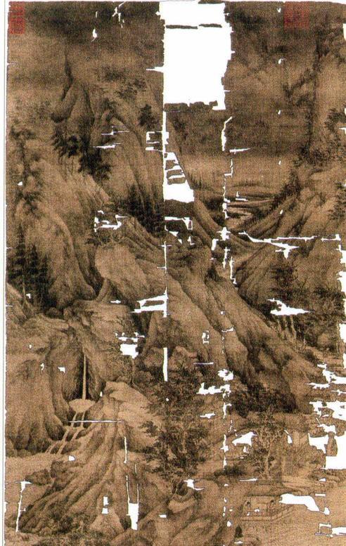 董源《溪岸图》修复前局部原貌